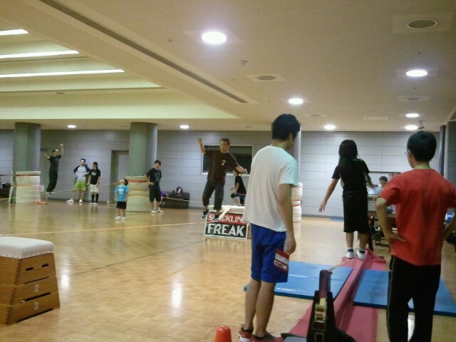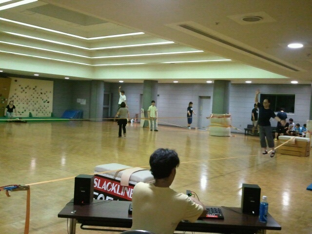 29日は柴崎体育館スラックライン開催日でした! 今回は25mm幅の15mをnewラインにしてみたり、USTREAM番組の番外編をやってみたりと新しい試みをしてみました(*・ω・)ノ 音楽担当の陽気なお兄さんも途中から2名になり盛り上がりましたね♪ まだまだ企画段階のものもあるので、これからも試していけたらなと思っていま~す(・∀・) |